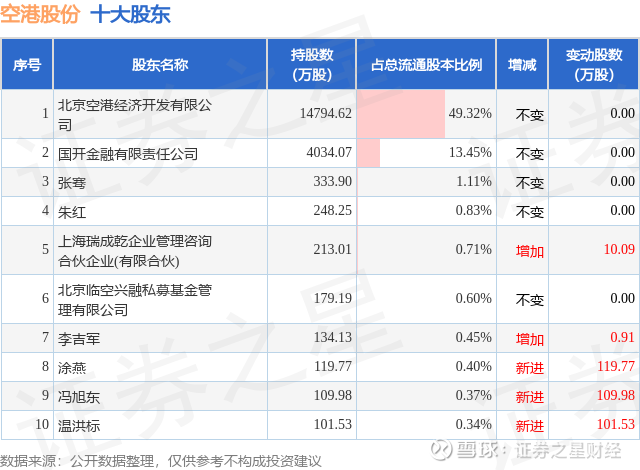 根据空港股份2025年一季报公布的十大股东详情如下: