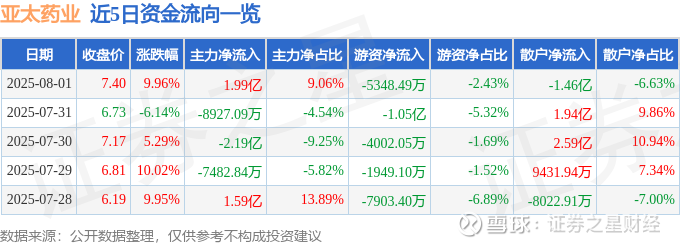 证券之星消息,亚太药业8月1日涨停收盘,收盘价7.4元。该股于13点33分涨停,1次打开涨停,截止收盘封单资金为3145.3万元,占其流通市值0.57%。