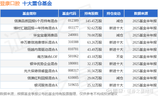 根据2025基金半年报公募基金重仓股数据,重仓该股的公募基金共27家,其中持有数量最多的公募基金为信达澳亚基金的信澳品质回报6个月持有混合。信澳品质回报6个月持有混合目前规模为7.48亿元,最新净值0.5296(7月31日),较上一交易日下跌1.21%,近一年下跌1.1%。该公募基金现任基金经理为邹运。邹运在任的基金产品包括:信澳红利回报混合A,管理时间为2019年5月20日至今,期间收益率为15.78%;信澳蓝筹精选股票A,管理时间为2020年9月9日至今,期间收益率为-38.88%;信澳至诚精选混合A,管理时间为2021年3月2日至今,期间收益率为-54.35%;