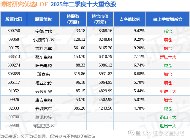 根据2025基金半年报公募基金重仓股数据,重仓该股的公募基金共19家,其中持有数量最多的公募基金为博时基金的博时研究优选LOF。博时研究优选LOF目前规模为8.62亿元,最新净值0.8666(7月31日),较上一交易日下跌0.97%,近一年上涨35.45%。该公募基金现任基金经理为石炯。