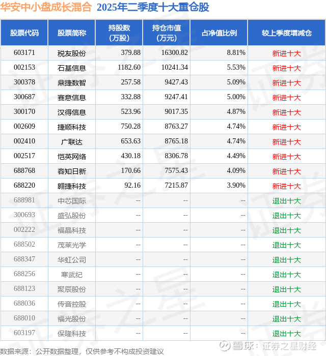根据2025基金半年报公募基金重仓股数据,重仓该股的公募基金共21家,其中持有数量最多的公募基金为华安基金的华安中小盘成长混合。华安中小盘成长混合目前规模为18.5亿元,最新净值2.9592(7月31日),较上一交易日上涨0.29%,近一年上涨25.11%。该公募基金现任基金经理为金拓。金拓在任的基金产品包括:华安智增精选混合,管理时间为2023年10月23日至今,期间收益率为12.54%;华安景气回报混合发起式A,管理时间为2024年9月19日至今,期间收益率为14.98%;