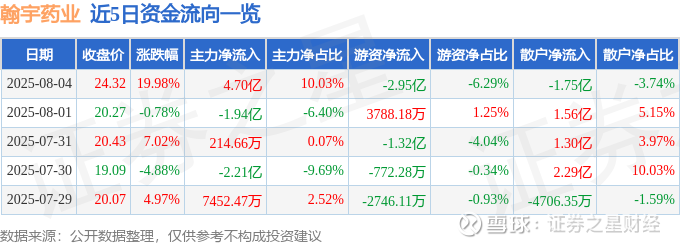 证券之星消息,翰宇药业8月4日涨停收盘,收盘价24.32元。该股于13点27分涨停,1次打开涨停,截止收盘封单资金为2.32亿元,占其流通市值1.35%。