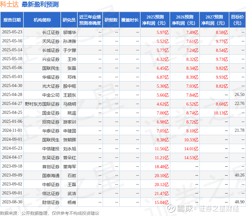 以下是详细的盈利预测信息: