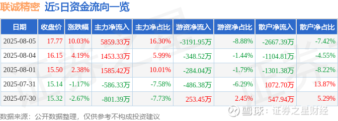 8月5日的资金流向数据方面,主力资金净流入5859.33万元,占总成交额16.3%,游资资金净流出3191.95万元,占总成交额8.88%,散户资金净流出2667.39万元,占总成交额7.42%。