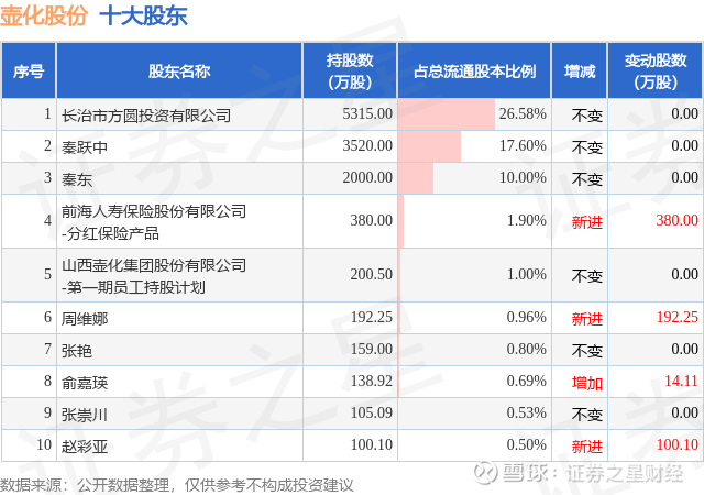 根据壶化股份2025年一季报公布的十大股东详情如下: