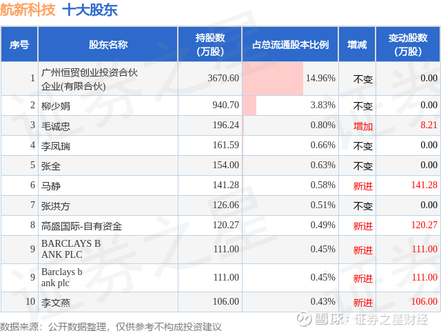 根据航新科技2025年一季报公布的十大股东详情如下: