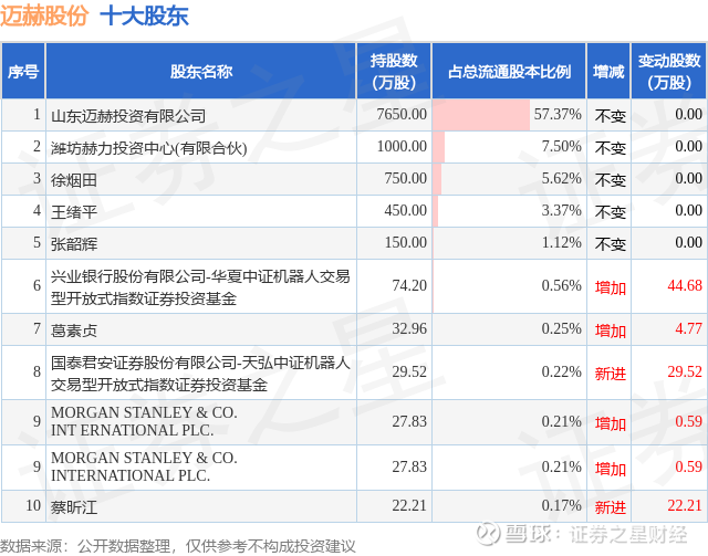 根据迈赫股份2025年一季报公布的十大股东详情如下: