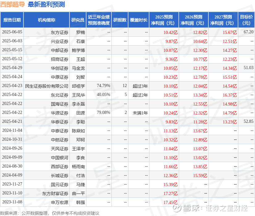 以下是详细的盈利预测信息: