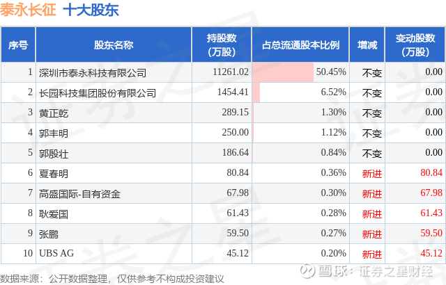 根据泰永长征2025年一季报公布的十大股东详情如下: