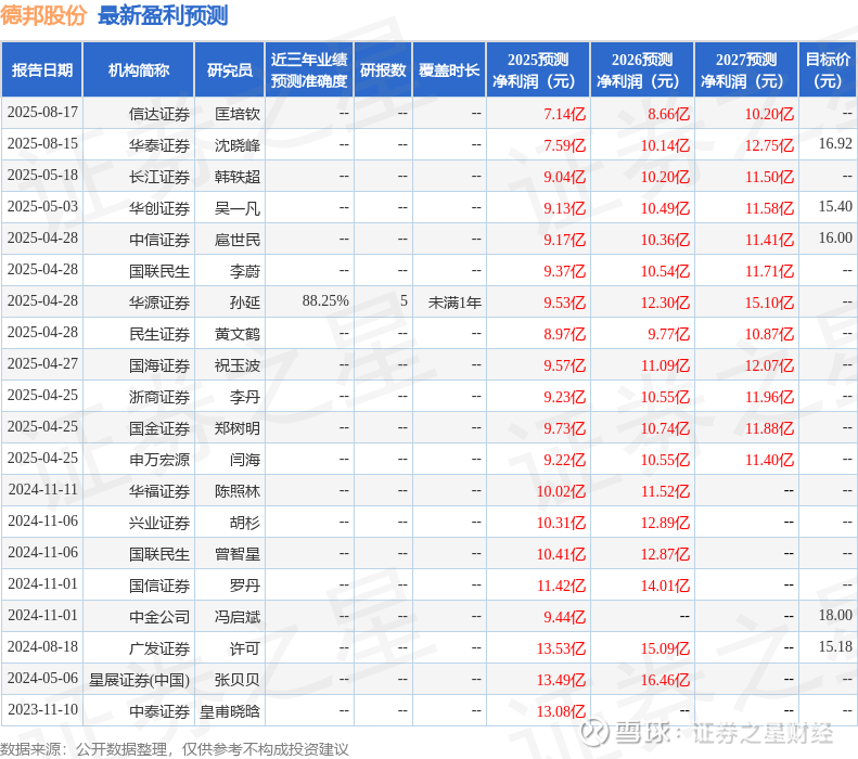 证券之星数据中心根据近三年发布的研报数据计算,华源证券孙延研究员团队对该股研究较为深入,近三年预测准确度均值高达88.25%,其预测2025年度归属净利润为盈利9.53亿,根据现价换算的预测PE为18.2。