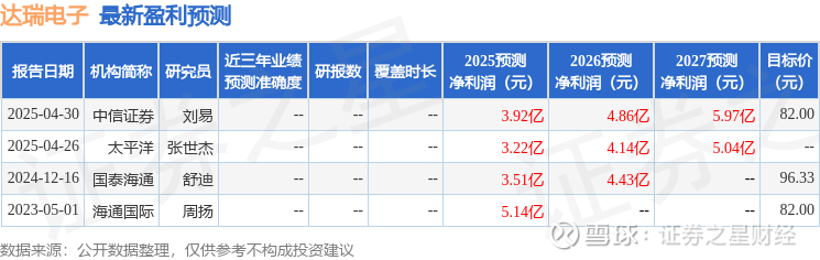 最新盈利预测明细如下:
