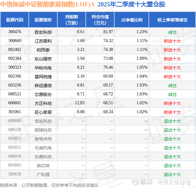 中信保诚中证智能家居指数(LOF)A的前十大重仓股如下: