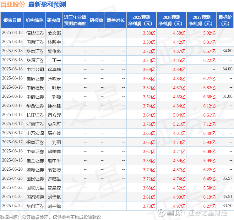 百亚股份(003006) 公司发布2025年中期报告 25Q2收入7.7亿,同比+0.2%,归母净利润0.57亿,同比-25.5%,扣非归母净利润0.53亿,同比-28.4%; 25H1收入17.6亿,同比+15.1%,归母净利润1.88亿,同比+4.6%,扣非归母净利润1.82亿,同比+6.1%。 25Q2毛利率53.1%,同比-1.3pct,归母净利率7.5%,同比-2.6pct; 公司持续强化品牌建设和渠道拓展,根据公司发展规划和市场竞争环境加大了市场推广和品牌宣传力度,以持续扩大消费者人群和产品销售覆盖范围,持续提升品牌影响力。2025H1公司销售费用投入6.42亿元,其中营销类推广费用投入4.64亿元,同比增长26.1%。未来公司仍将保持一定力度的品牌和渠道资源投入,进一步提高产品知名度和美誉度,以扩大公司经营规模、增加公司产品的市场份额,提升公司的市场竞争力。 产品结构优化,围绕大健康持续推进新品营销 分品类,25H1公司卫生巾收入16.88亿,同比+19.93%,毛利率55.06%,同比-2.31pct; 公司持续聚焦卫生巾系列产品,优化产品结构,提升盈利水平,其中自由点产品实现营业收入16.87亿元,较去年同期增长20.5%,以益生菌、有机纯棉系列为代表的大健康系列产品收入增速更快。随着更多品牌推出女性卫生裤产品以及科普宣传引导,且产品的薄型化及柔软舒适性能不断提升,女性卫生裤逐渐得到广大女性消费者的接受和青睐,公司裤型卫生巾产品收入增长迅速。 后续公司新品仍围绕大健康赛道进行研发,聚焦消费者核心关切与需求痛点,提供有效的产品解决方案。公司会优先通过电商平台去做消费者意见收集和产品推广试点,新产品还处于测试阶段,尚未进行大规模量产和市场投放。 外围表现超预期,电商兼顾收入&盈利发展 公司坚持线上线下渠道融合,多渠道协同发展,通过市场推广和品牌宣传持续提升公司品牌影响力。 25H1线下渠道实现营业收入11.33亿元,同比+39.8%,其中川渝实现收入4.26亿元,同比+13.07%,云贵陕2.78亿元,同比14.65%,其他区域发展迅速,实现营业收入4.3亿,同比+124.2%;上半年公司核心五省之外的市场拓展节奏较好,各省份经营策略主要依据销售规模、竞争状况和公司定位来判定。不同发展阶段的省份在人员配置、资源投入等方面会有所不同。 25H1线上渠道实现营业收入5.92亿元,同比-9.44%,主要系短期舆情对线上渠道短期营收及经营利润有较大影响,期间公司积极应对市场变化,聚焦投入重点资源,业务已逐步恢复常态。未来,公司将进一步提高研发创新能力、优化和丰富产品线、拓展营销网络、优化人才结构等措施,扩大公司的经营规模、增加公司产品的市场份额、提升公司的市场竞争力和盈利能力。公司预计四季度将恢复至正常增速状态,公司有专业的电商自运营团队,通过营销模式创新,持续推进产品迭代升级,在电商运营方面仍有较强的竞争优势。 调整盈利预测,维持“买入”评级 公司坚持既定发展战略,聚焦优势资源,持续打造品牌力,产品上持续优化产品结构,渠道上深耕核心优势地区,有序拓展全国市场,成长逻辑持续兑现。我们调整盈利预测,预计25-27年归母分别为3.7/4.8/6.2亿元(前值为3.7/4.8/5.9亿元),对应PE分别为35X/27X/21X。 风险提示:行业竞争加剧风险,原材料价格波动风险,舆论风险等