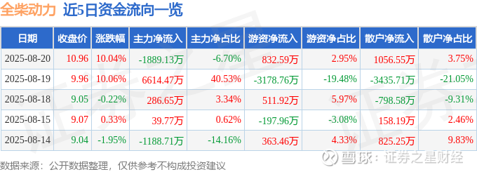 8月20日的资金流向数据方面,主力资金净流出1889.13万元,占总成交额6.7%,游资资金净流入832.59万元,占总成交额2.95%,散户资金净流入1056.55万元,占总成交额3.75%。