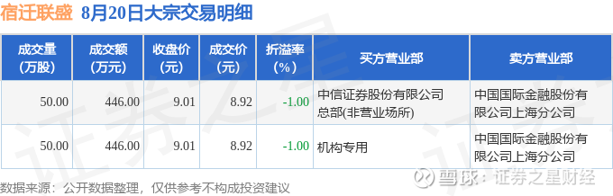 证券之星消息,8月20日宿迁联盛发生大宗交易,交易数据如下: