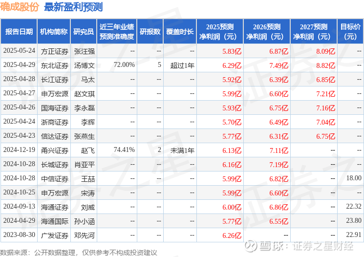 证券之星数据中心根据近三年发布的研报数据计算,甬兴证券赵飞研究员团队对该股研究较为深入,近三年预测准确度均值为74.41%,其预测2025年度归属净利润为盈利6.13亿,根据现价换算的预测PE为14.85。