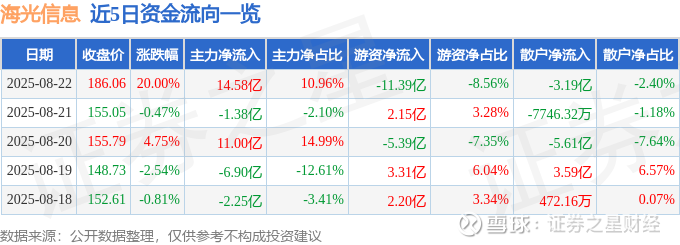 证券之星消息,海光信息8月22日涨停收盘,收盘价186.06元。该股于13点5分涨停,1次打开涨停,截止收盘封单资金为4001.18万元,占其流通市值0.01%。