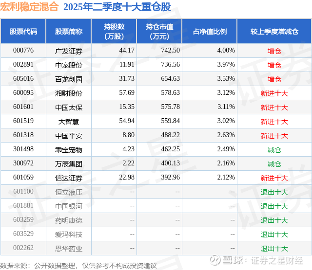 根据2025基金半年报公募基金重仓股数据,重仓该股的公募基金共6家,其中持有数量最多的公募基金为宏利基金的宏利稳定混合。宏利稳定混合目前规模为1.85亿元,最新净值1.7485(8月21日),较上一交易日下跌0.22%,近一年上涨24.77%。该公募基金现任基金经理为邱楠宇。
