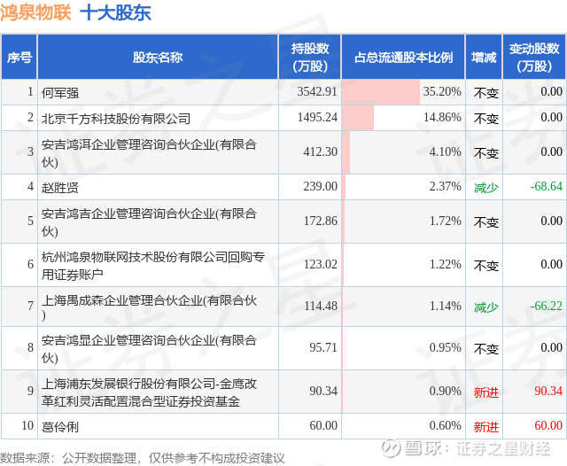 根据鸿泉物联2025年一季报公布的十大股东详情如下: