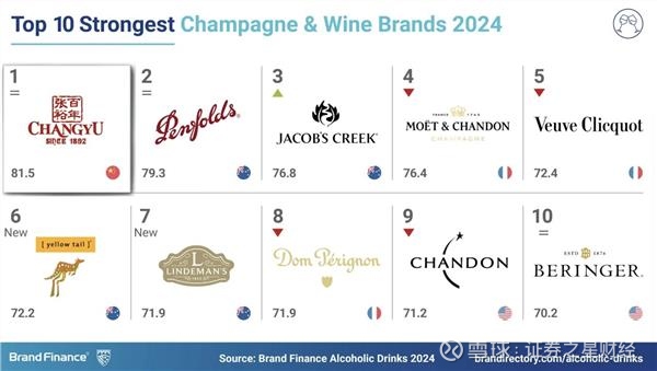 2023年、2024年,张裕连续两年蝉联全球权威品牌价值评估机构Brand Finance发布的“全球最强葡萄酒&香槟酒品牌”(World’s strongest Wine & Champagne brands)榜单第一名。