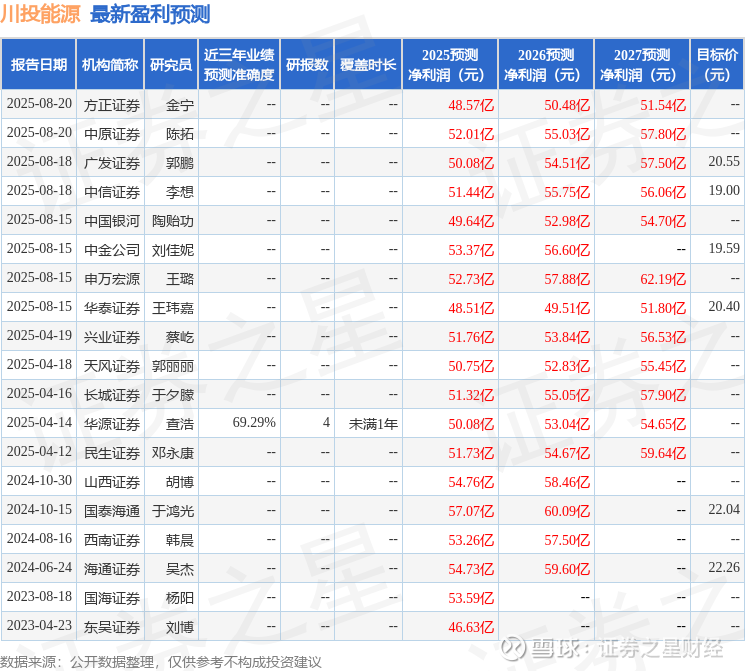 天风证券股份有限公司郭丽丽,赵阳近期对川投能源进行研究并发布了研究报告《雅砻江水电为业绩增量主力,控股资产盈利稳健》,给予川投能源买入评级。