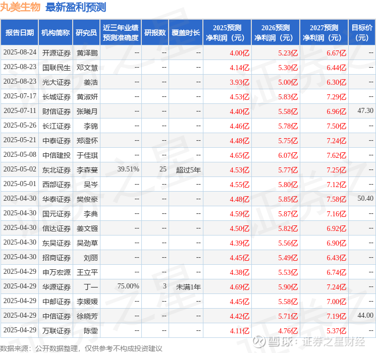 最新盈利预测明细如下: