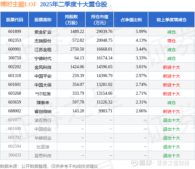 根据2025基金半年报公募基金重仓股数据,重仓该股的公募基金共38家,其中持有数量最多的公募基金为博时基金的博时主题LOF。博时主题LOF目前规模为48.52亿元,最新净值1.103(8月22日),较上一交易日上涨1.01%,近一年上涨16.47%。该公募基金现任基金经理为金晟哲。金晟哲在任的基金产品包括:博时均衡回报混合A,管理时间为2022年5月31日至今,期间收益率为-4.74%。