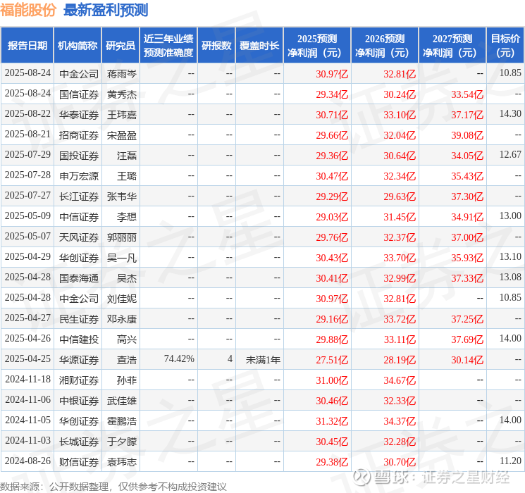 证券之星数据中心根据近三年发布的研报数据计算,华源证券查浩研究员团队对该股研究较为深入,近三年预测准确度均值为74.42%,其预测2025年度归属净利润为盈利27.51亿,根据现价换算的预测PE为9.89。