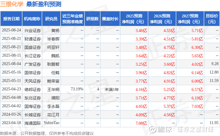 最新盈利预测明细如下:
