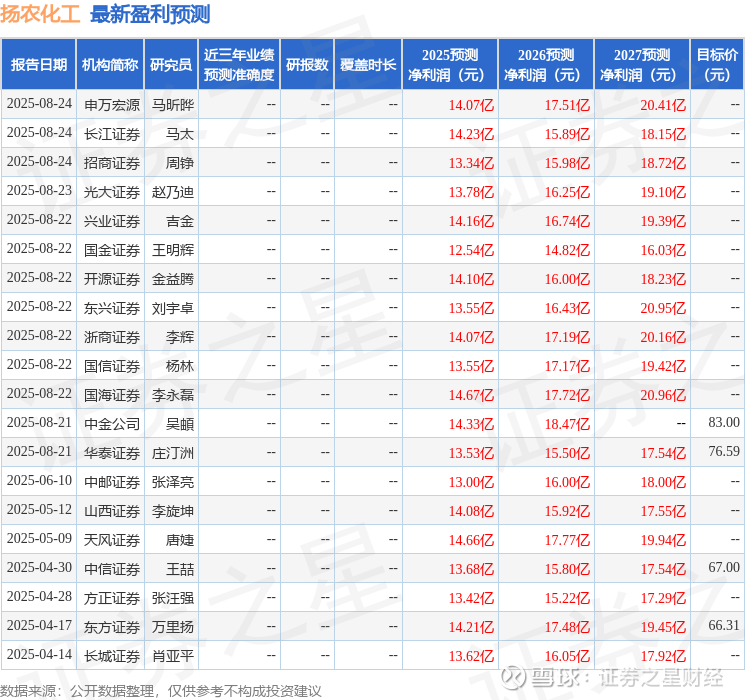 最新盈利预测明细如下: