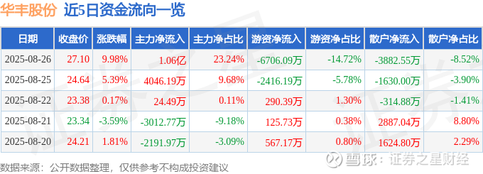 8月26日的资金流向数据方面,主力资金净流入1.06亿元,占总成交额23.24%,游资资金净流出6706.09万元,占总成交额14.72%,散户资金净流出3882.55万元,占总成交额8.52%。