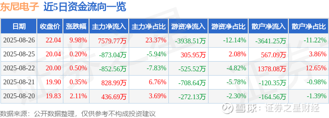 8月26日的资金流向数据方面,主力资金净流入7579.77万元,占总成交额23.37%,游资资金净流出3938.51万元,占总成交额12.14%,散户资金净流出3641.25万元,占总成交额11.22%。