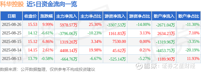 证券之星消息,科华控股8月26日涨停收盘,收盘价15.53元。该股于9点35分涨停,4次打开涨停,截止收盘封单资金为2341.33万元,占其流通市值0.79%。