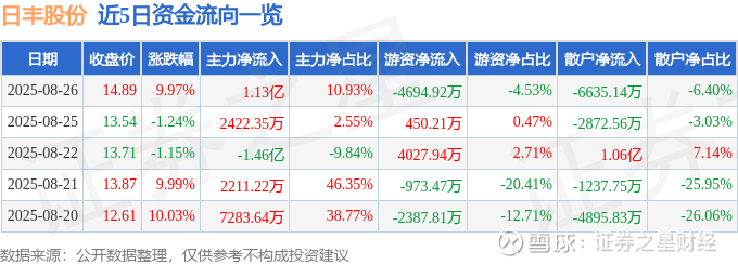证券之星消息,日丰股份8月26日涨停收盘,收盘价14.89元。该股于10点52分涨停,未打开涨停,截止收盘封单资金为1.05亿元,占其流通市值2.6%。