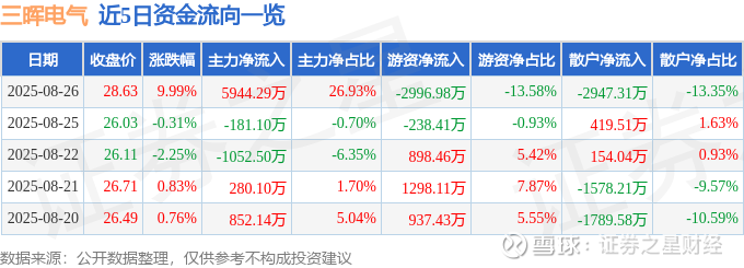 8月26日的资金流向数据方面,主力资金净流入5944.29万元,占总成交额26.93%,游资资金净流出2996.98万元,占总成交额13.58%,散户资金净流出2947.31万元,占总成交额13.35%。