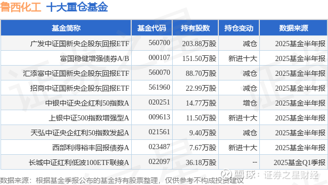 根据2025基金半年报公募基金重仓股数据,重仓该股的公募基金共8家,其中持有数量最多的公募基金为广发基金的广发中证国新央企股东回报ETF。广发中证国新央企股东回报ETF目前规模为7.45亿元,最新净值1.1729(8月25日),较上一交易日上涨1.92%,近一年上涨23.31%。该公募基金现任基金经理为罗国庆。罗国庆在任的基金产品包括:广发中证传媒ETF,管理时间为2017年12月27日至今,期间收益率为-2.54%;广发中证传媒ETF联接A,管理时间为2018年1月2日至今,期间收益率为-1.64%;广发中证A100ETF联接A,管理时间为2019年5月27日至今,期间收益率为25.89%;广发中证创新药产业ETF,管理时间为2020年12月3日至今,期间收益率为-29.48%。
