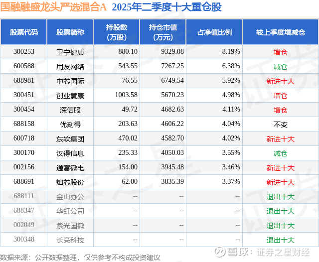 国融融盛龙头严选混合A的前十大重仓股如下: