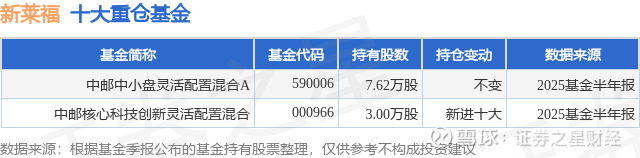 根据2025基金半年报公募基金重仓股数据,重仓该股的公募基金共2家,其中持有数量最多的公募基金为中邮基金的中邮中小盘灵活配置混合A。中邮中小盘灵活配置混合A目前规模为2.13亿元,最新净值2.775(8月25日),较上一交易日上涨1.98%,近一年上涨74.2%。该公募基金现任基金经理为曹思。曹思在任的基金产品包括:中邮核心科技创新灵活配置混合,管理时间为2015年2月11日至今,期间收益率为63.8%;中邮专精特新一年持有混合A,管理时间为2022年9月14日至今,期间收益率为4.15%。