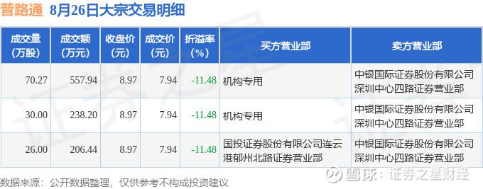 证券之星消息,8月26日普路通发生大宗交易,交易数据如下: