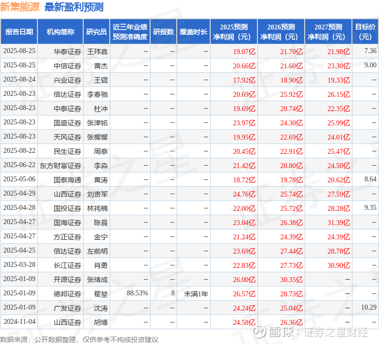 具体内容如下:问:现在煤炭价格处在下行区间,公司针对煤炭价格的下跌都采取了哪些应对措施?答:您好,2025年面对煤炭市场下行,公司牢固树立安全发展理念,稳产能、谋增量,不断夯实煤炭产业基础。一是科学谋划矿井、采区及水平接替,加快刘庄煤矿二水平延深工程项目建设、新集二矿三水平延深工程前期手续办理,协调推进杨村煤矿复建前期工作,保证煤炭产业稳产。二是积极推广新设备、新工艺,建成首条盾构机掘进作业线,在大断面、坚硬砂岩条件下,较传统掘进效率提高 5-6倍;投用 13条掘锚一体化作业线,较常规综掘施工效率提升 20%。三是狠抓煤质管理,统筹接续布局、煤质预测、系统优化、现场管控、地面洗选等工作,加强工作面源头煤质管理,紧盯煤矸分流、水分杂物控制等关键环节,商品煤煤质较上年同期有较大改善。随着矿井生产布局优化调整的效果显现和各项煤质管控措施的落实,商品煤煤质会保持稳定的水平。谢谢关注。问:控股股东对于公司与中煤能源的同业竞争有哪些安排或者计划?答:您好,关于同业竞争承诺履行情况敬请查阅《新集能源关于控股股东申请延期履行避免同业竞争承诺的公告》以及公司 2025年半年度报告第五节重要事项,一、承诺事项履行情况。公司将密切关注督促控股股东严格按照中国证监会和上海证券交易所的相关规定及时履行承诺事项。谢谢关注。问:控股股东曾承诺 2028年 5月前将非上市公司中煤华昱能源、中煤新能源山阴公司注入中煤能源,有没有将某些非上市优质资产注入公司的计划?比如:中煤能源华晋能源集团、中煤平朔集团、中煤陕西公司、中煤西北能源公司。答:您好,公司暂无相关信息披露。谢谢关注。问:公司的营收相对稳定,但净利润出现明显下滑,公司有没有其他新的计划来增厚公司业绩?答:您好,2025年是“十四五”收官之年,公司将继续遵循“存量提效、增量转型”和“两个联营+”发展思路,践行“安全高效发展、绿色低碳发展、改革创新发展”理念,结合新一轮国企改革,公司深化落实提高上市公司质量行动方案,根据“十四五”发展规划,坚持稳中求进工作总基调,加强企业安全高效管理,做好生产运营和新项目建设,构建“煤炭-煤电-新能源”综合能源供给体系,不断提升经营管理水平、强化风险管理能力,致力于通过高质量发展提升公司长期投资价值,以此回馈广大投资者。同时,公司将持续加大成本管控力度,严控成本费用支出,确保将成本控制在预算管控目标以内。一是强化预算刚性约束。坚持“有预算不超支、无预算不开支”,切实加强成本费用预算控制与考核。二是大力推动标准成本管理。不断完善定额体系,搭建标准成本信息管理系统,提升成本精细化管理水平。三是加强采购提升管理。减少贸易商和经销商等中间采购,从源头控制成本支出。四是强化技术经济一体化。深入开展设计优化、技术优化和系统优化,积极推广新工艺、新材料、新技术的应用,实现技术降本、管理降本。五是合理压控人工成本。坚持效益效率原则,按照“控总量、调结构、提素质”要求,严控用工总量。六是做好成本日常管理。加强修旧利废、回收复用管理,减少新物资投入;七是加强成本对标管理。持续开展与集团内外先进同行企业成本对标工作,汲取经验、取长补短,堵塞成本控制中的管理漏洞,促进成本总额和单位成本的稳中有降。谢谢关注。问:控股股东计划增持的金额不大,可增持进度非常慢,期限长。希望控股加快增持进度,并及时通报。答:您好,2025年 1月 4日,公司披露《关于控股股东增持公司股份计划的公告》。公司控股股东中国中煤能源集团有限公司(以下简称“中国中煤”)通知,基于对公司未来发展前景的信心和对资本市场长期投资价值的认可,为促进公司持续、健康、稳定发展,中国中煤拟自公告披露之日起 12个月内通过上海证券交易所交易系统采用集中竞价方式增持公司 A股股份,增持总金额不低于人民币 2.5亿元,不高于人民币 5亿元,且增持数量不超过公司总股本的 2%。2025年 1月 21日,公司披露《关于控股股东首次增持公司股份暨增持计划进展的公告》。2025年 1月 20日,中国中煤通过上海证券交易所交易系统以集中竞价方式首次增持公司 1,421,100股 A股股份,占公司总股本比例约为 0.05%,增持金额为 9,996,371.00元(不含佣金税费)。截至公告披露日,中国中煤持有公司 786,713,257股 A股股份,占公司已发行总股本的 30.37%。2025年 4月 8日,公司披露《关于控股股东增持公司股份的进展公告》,中国中煤于2025年 1月 4日至 2025年 4月 7日期间通过上海证券交易所交易系统以集中竞价方式累计增持公司 7,920,495股 A股股份,占公司总股本比例约为 0.31%,累计增持金额为51,885,164.00元(不含佣金税费)。截至公告披露日,中国中煤持有公司 793,212,652股 A股股份,占公司已发行总股本的 30.62%。2025年 6月 10日,公司披露《关于控股股东增持计划进展暨权益变动触及 1%刻度的提示性公告》,中国中煤于 2025年 4月 8日至 2025年 6月 6日期间通过上海证券交易所交易系统以集中竞价方式累计增持公司 9,887,074股 A股股份,占公司总股本比例约为0.38%。截至公告披露日,中国中煤持有公司 803,099,726股 A股股份,占公司已发行总股本的 31.00%。截至 6月末,中国中煤持有公司 806,930,126股 A股股份,占公司已发行总股本的31.15%。公司