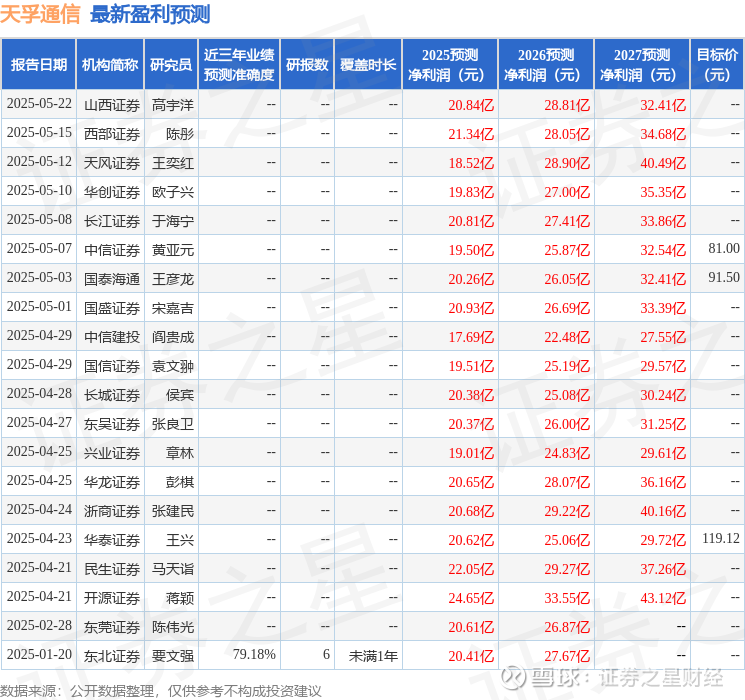 最新盈利预测明细如下: