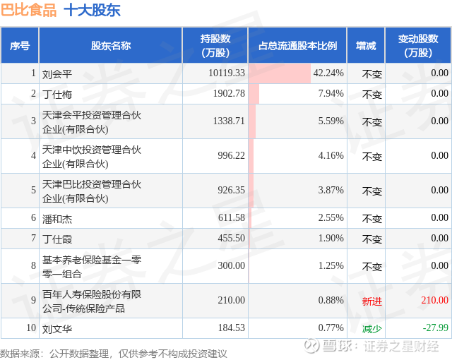 证券之星消息,8月26日巴比食品发布公告《巴比食品:关于股东减持股份结果公告》,其股东天津巴比投资管理合伙企业(有限合伙)、天津会平投资管理合伙企业(有限合伙)、天津中饮投资管理合伙企业(有限合伙)于2025年8月22日至2025年8月25日间合计减持201.49万股,占公司目前总股本的0.841%,变动期间该股股价上涨5.09%,截止8月25日收盘报23.33元。