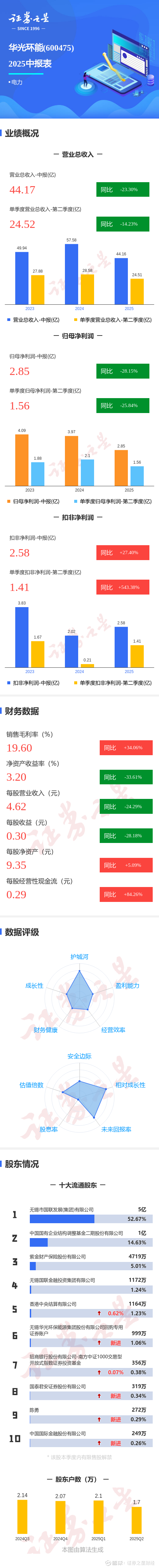证券之星消息,华光环能2025年中报显示,公司主营收入44.17亿元,同比下降23.3%;归母净利润2.85亿元,同比下降28.16%;扣非净利润2.58亿元,同比上升27.41%;其中2025年第二季度,公司单季度主营收入24.52亿元,同比下降14.23%;单季度归母净利润1.56亿元,同比下降25.84%;单季度扣非净利润1.41亿元,同比上升543.38%;负债率59.02%,投资收益1.01亿元,财务费用8209.74万元,毛利率19.6%。