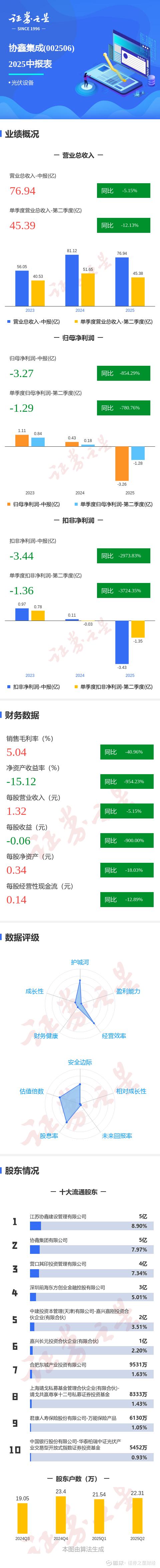证券之星消息,协鑫集成2025年中报显示,公司主营收入76.94亿元,同比下降5.16%;归母净利润-3.27亿元,同比下降854.29%;扣非净利润-3.44亿元,同比下降2973.83%;其中2025年第二季度,公司单季度主营收入45.39亿元,同比下降12.13%;单季度归母净利润-1.29亿元,同比下降780.77%;单季度扣非净利润-1.36亿元,同比下降3724.35%;负债率88.77%,投资收益-1942.88万元,财务费用1.1亿元,毛利率5.04%。