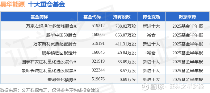 持有昊华能源最多的基金为万家宏观择时多策略混合A,目前规模为7.65亿元,最新净值2.3498(8月26日),较上一交易日下跌0.92%,近一年上涨6.61%。该基金现任基金经理为黄海。