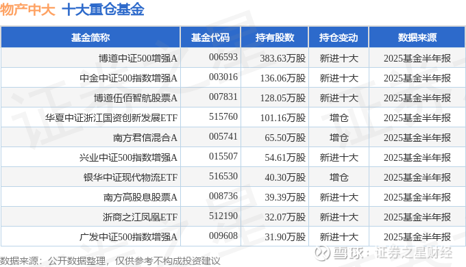 持有物产中大最多的基金为博道中证500增强A,目前规模为11.74亿元,最新净值2.1724(8月26日),较上一交易日上涨0.42%,近一年上涨59.37%。该基金现任基金经理为杨梦。