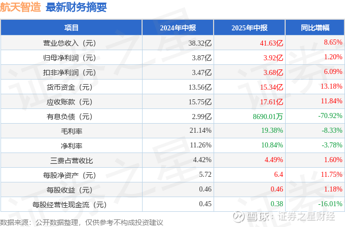 据证券之星公开数据整理,近期航天智造(300446)发布2025年中报。截至本报告期末,公司营业总收入41.63亿元,同比上升8.65%,归母净利润3.92亿元,同比上升1.2%。按单季度数据看,第二季度营业总收入20.08亿元,同比上升3.73%,第二季度归母净利润2.06亿元,同比下降6.48%。本报告期航天智造公司应收账款体量较大,当期应收账款占最新年报归母净利润比达222.43%。