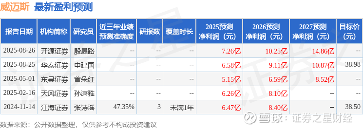 东吴证券股份有限公司曾朵红,阮巧燕,黄细里,朱家佟近期对威迈斯进行研究并发布了研究报告《2025年中报点评:盈利水平大幅提升,业绩亮眼》,给予威迈斯买入评级,目标价54.0元。