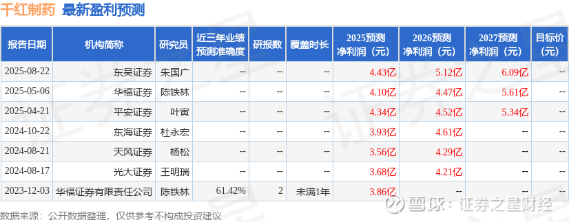 最新盈利预测明细如下: