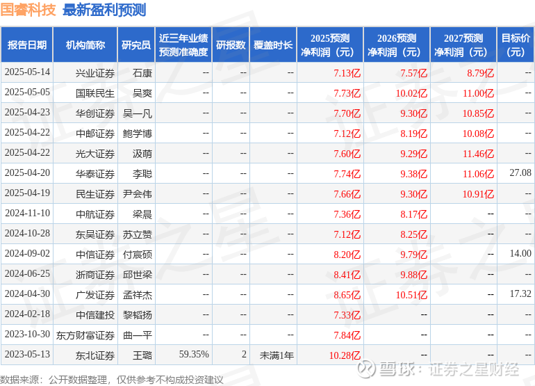 最新盈利预测明细如下: